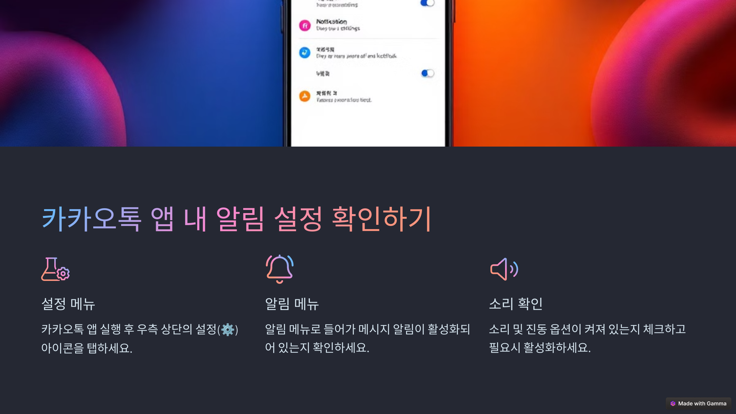 카카 오톡 자체 설정이 정상이라면, 스마트폰의 사운드 설정을 점검해 보세요.